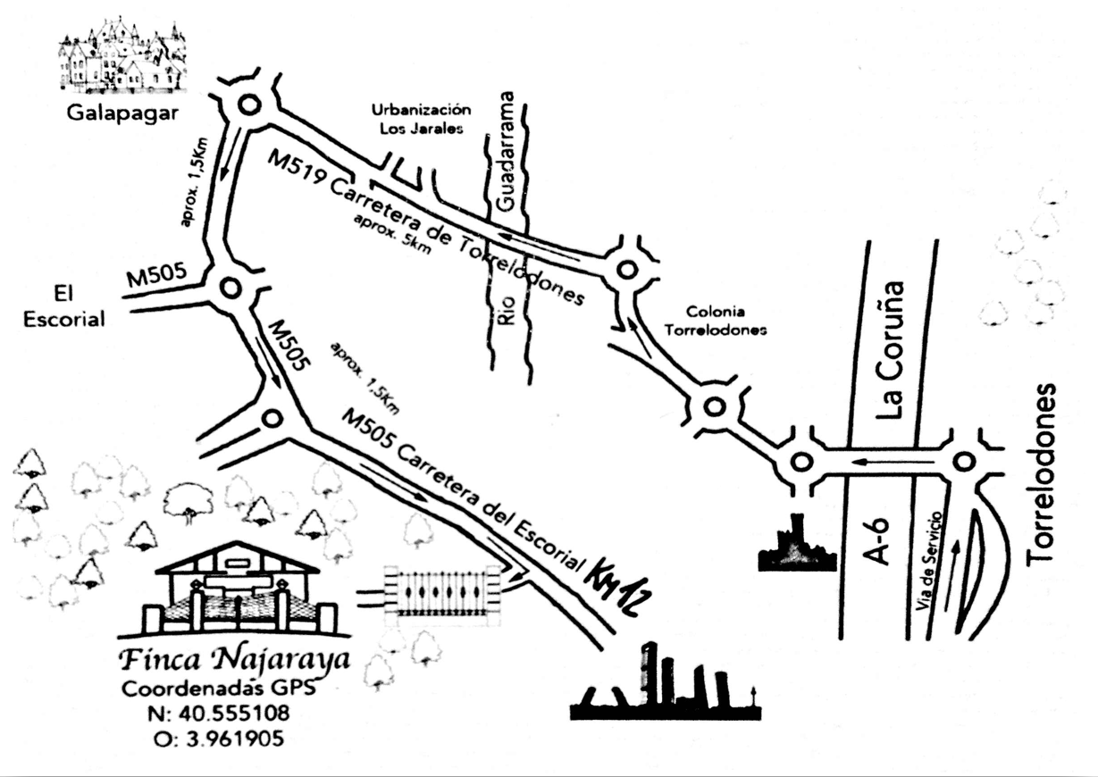 Dispone de amplio parking donde se puede dejar el coche hasta el día siguiente si es necesario (máximo 11:00 del Domingo, puesto que hay boda al día siguiente). La entrada a la finca no es muy clara, se recomienda usar el GPS y revisar las siguientes instrucciones: